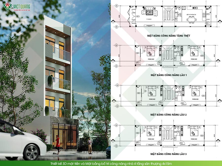 - Quy mô: Nhà phố 4 tầng + sân thượng