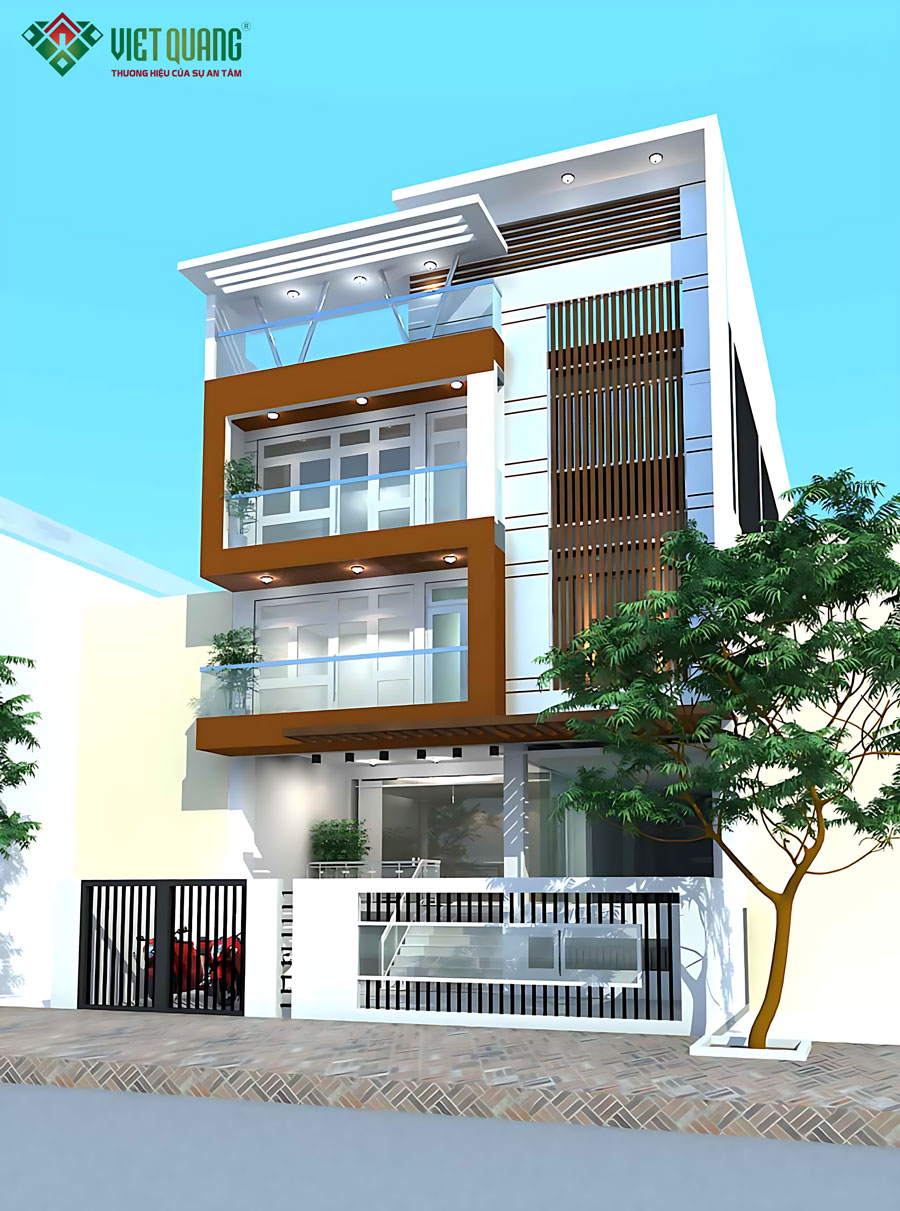 Mẫu nhà phố 4 tầng này được Việt Quang Group thiết kế với diện tích giả định 5m x 16m, phù hợp với mặt bằng đất phổ biến ở các quận nội thành. Tổng diện tích sàn xây dựng khoảng 320m², đáp ứng đầy đủ nhu cầu sinh hoạt của gia đình từ 4–6 thành viên.