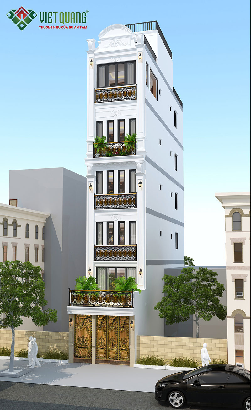 Giữa nhịp sống đô thị hiện đại và không gian đất chật người đông của các thành phố lớn như TP.HCM, những mẫu nhà phố cao tầng ngày càng trở thành lựa chọn tối ưu cho các gia đình. Và nổi bật trong số đó chính là mẫu nhà phố 7 tầng tân cổ điển do Việt Quang Group thiết kế – một công trình thể hiện rõ nét sự sang trọng, đẳng cấp và tinh tế vượt thời gian.