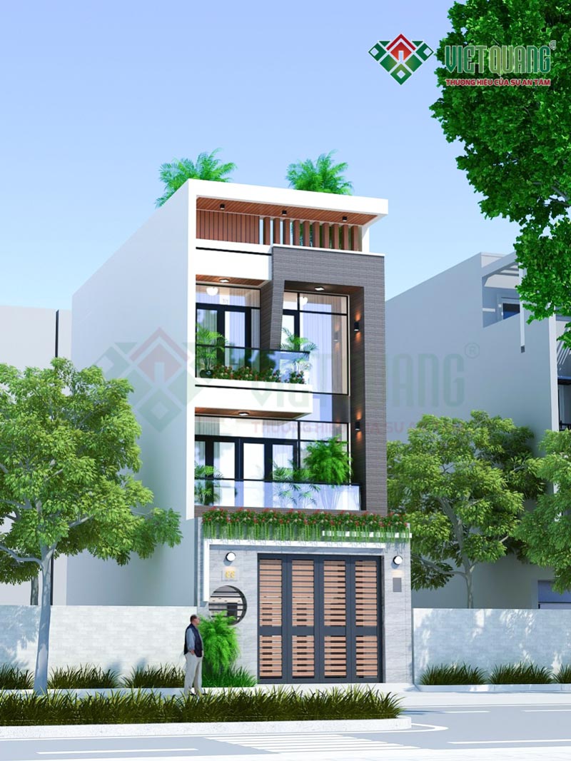 Ngôi nhà được thiết kế với mặt tiền hiện đại, bố cục hình khối rõ ràng, đường nét mạnh mẽ nhưng không khô cứng. Với diện tích 5.5x17m, kiến trúc sư Việt Quang Group đã tận dụng tối đa không gian, tạo nên bố cục thoáng mở, kết hợp hài hòa giữa ánh sáng tự nhiên – mảng xanh – không gian sống tiện nghi.