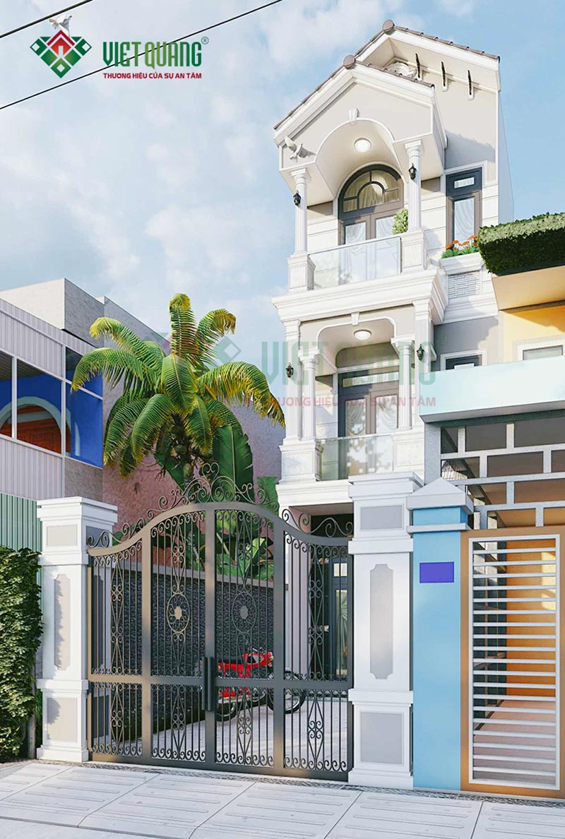 Nếu hướng nhà thuộc Tây hoặc Tây Bắc (nhiệt, nhiều nắng), Việt Quang Group sử dụng giải pháp lam chắn, mảng xanh mặt tiền và cửa hai lớp, giúp giảm bức xạ, cân bằng năng lượng.