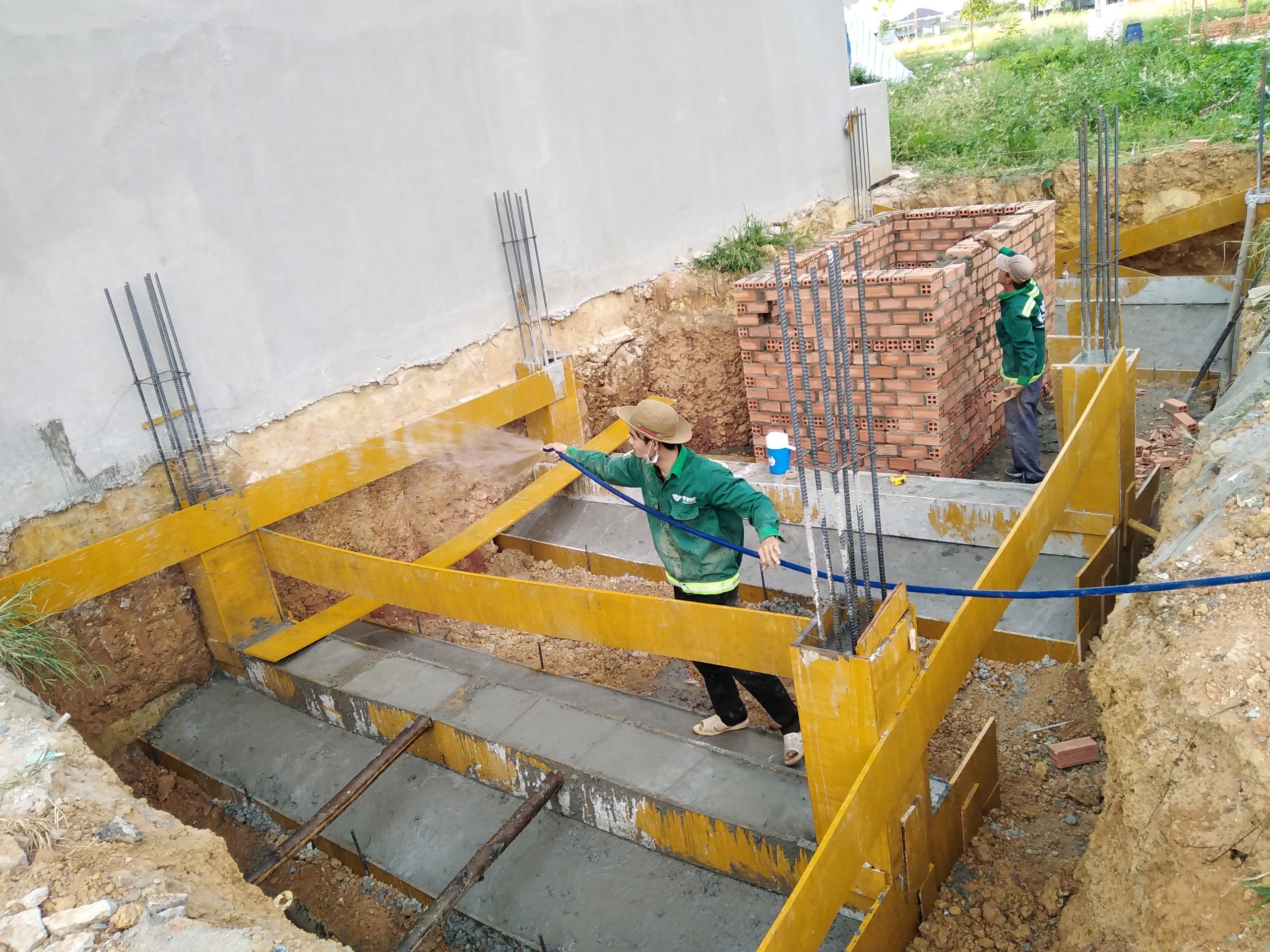 Mặt bằng hố móng được đào đúng kích thước – độ sâu – chiều rộng theo bản vẽ. Sau khi đào xong, hố móng phải được giữ khô thoáng, sạch sẽ để không ảnh hưởng đến việc lắp đặt và đổ bê tông.