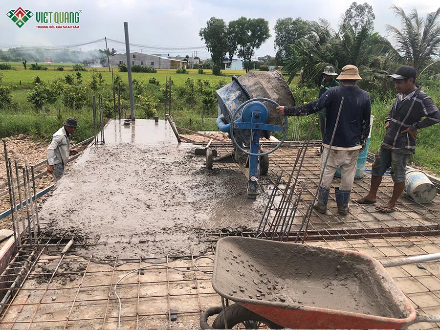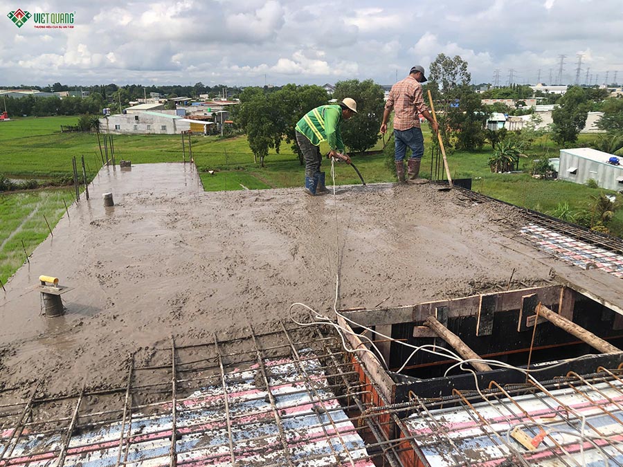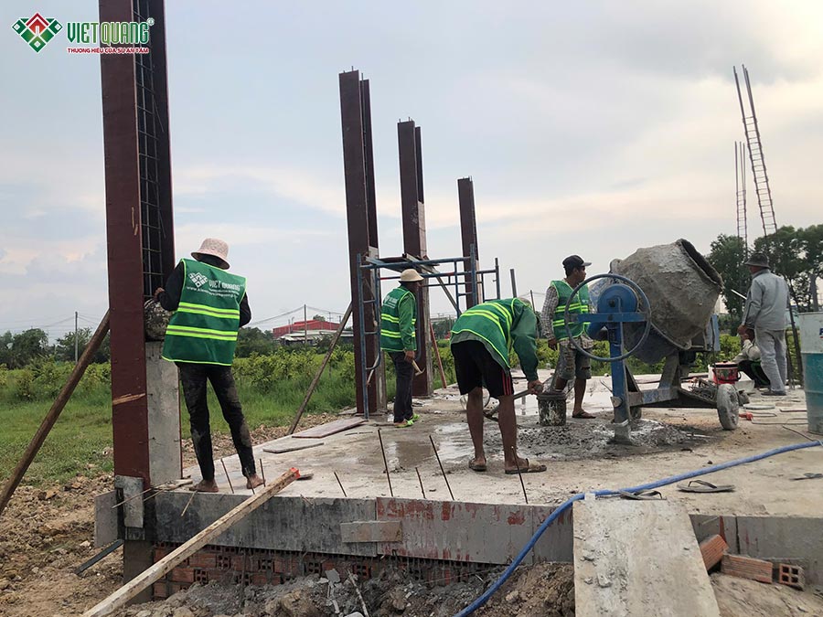 Công trình được xử lý nền, ép cọc bê tông, đổ bê tông móng và gia cố cốt thép chắc chắn. Đây là hạng mục quan trọng quyết định độ bền lâu dài nên được kiểm soát nghiêm ngặt theo tiêu chuẩn kỹ thuật.