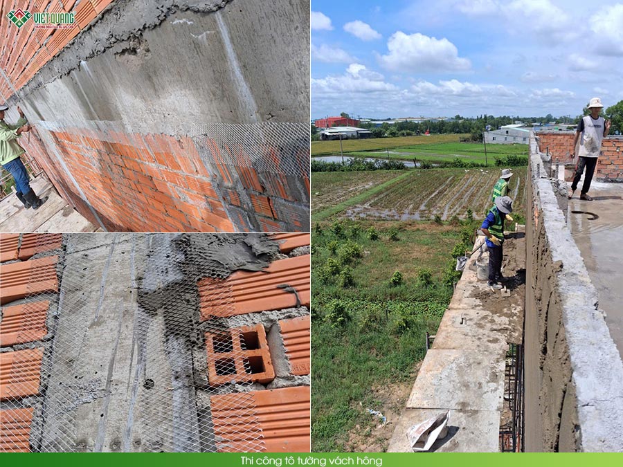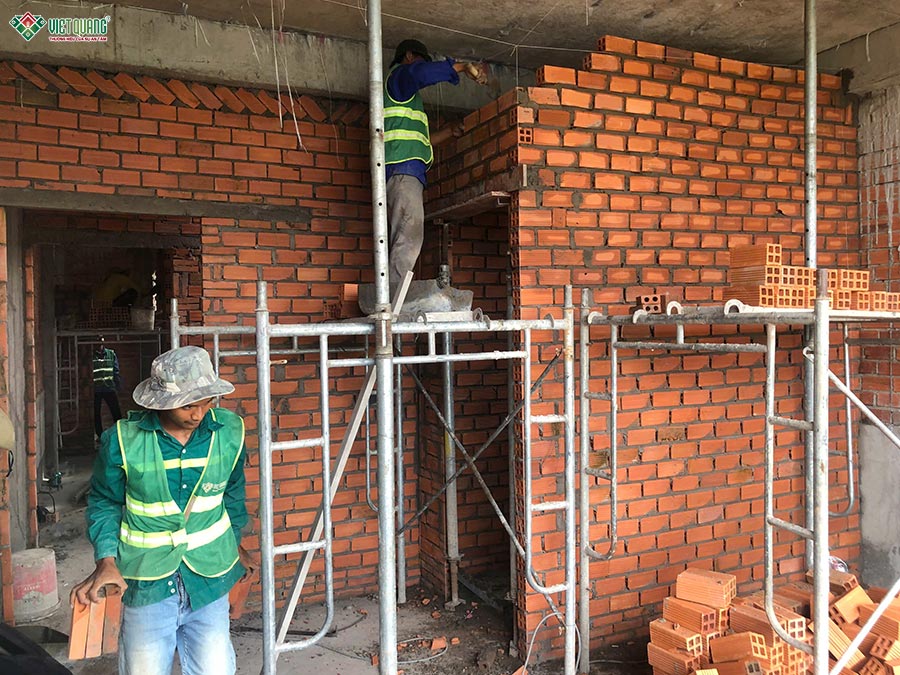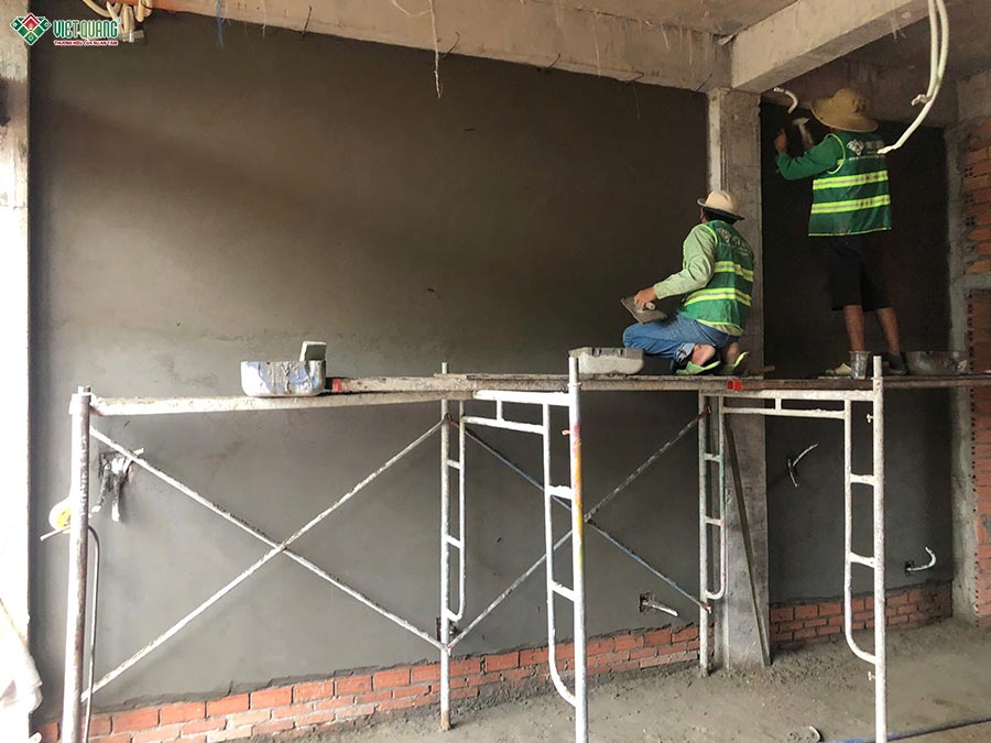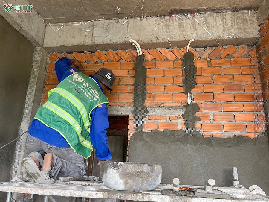 Xây tường bao, tường ngăn, tô trát hoàn thiện. Các vị trí tiếp giáp được đóng lưới chống nứt cẩn thận. Công tác chống thấm sân thượng, nhà vệ sinh, ban công được thực hiện kỹ lưỡng nhằm đảm bảo độ bền lâu dài cho công trình.