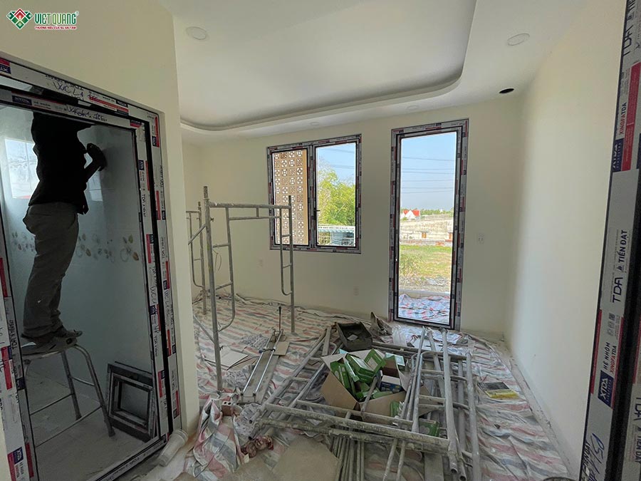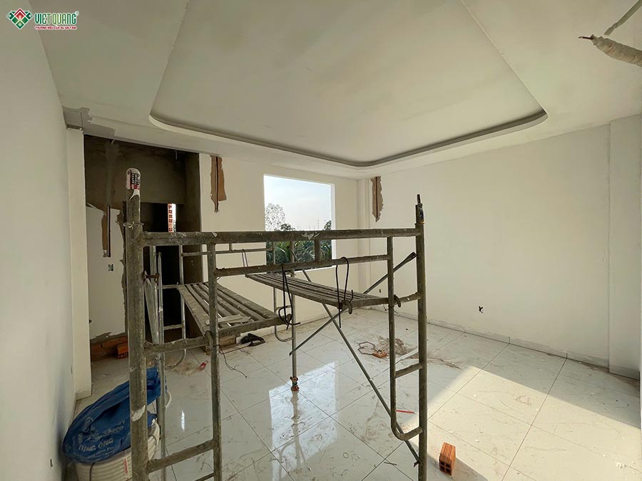 Tiến hành ốp lát, sơn nước, trần thạch cao, lắp đặt cửa, thiết bị điện nước, thiết bị vệ sinh và nội thất cơ bản. Mỗi công đoạn đều được kiểm soát chặt chẽ về vật tư và chất lượng hoàn thiện trước khi bàn giao.