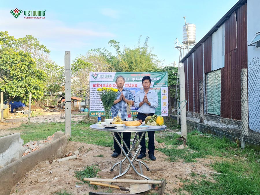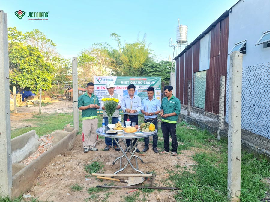 Hình ảnh đội ngũ Việt Quang Group cùng Chú Đức cúng khởi công