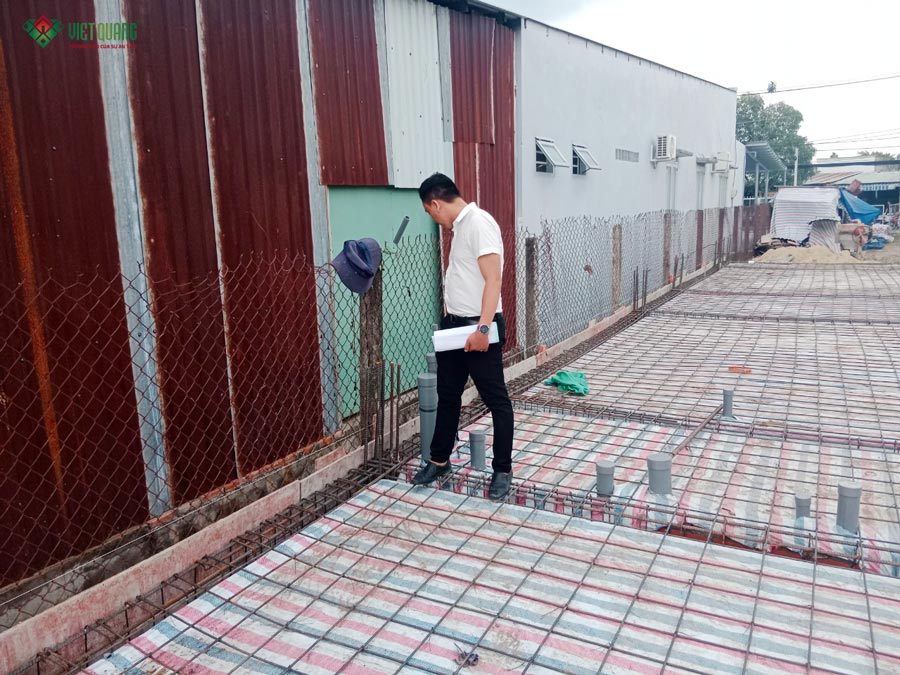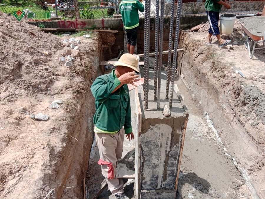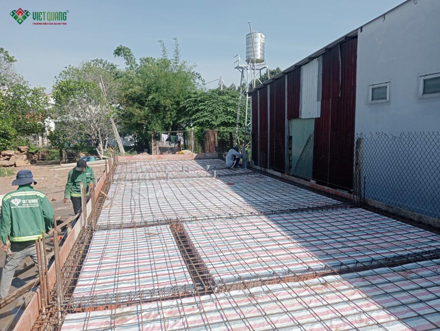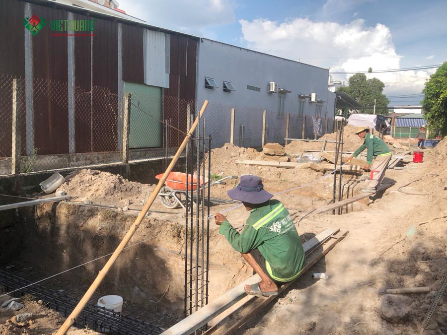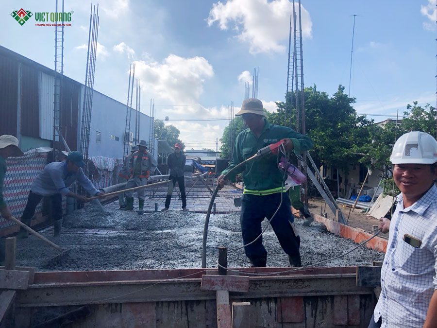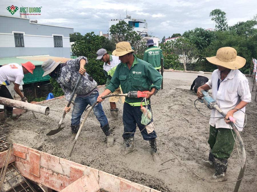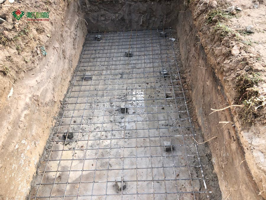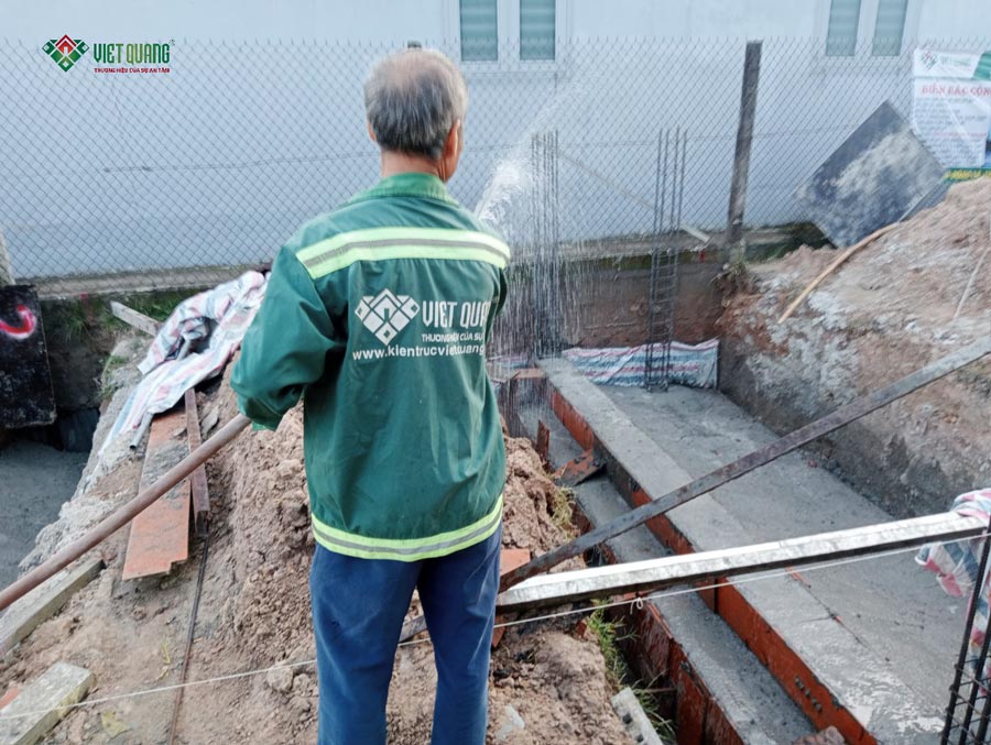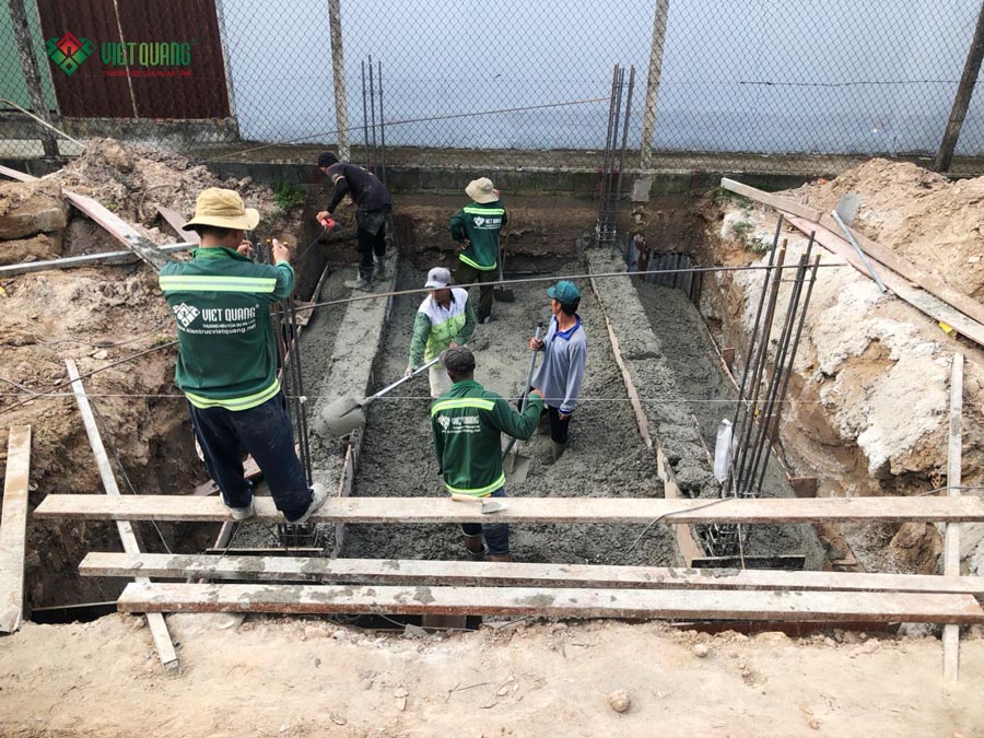 Giai đoạn thi công móng đóng vai trò quan trọng, quyết định đến độ bền vững của toàn bộ công trình. Đội ngũ Việt Quang Group triển khai các hạng mục ép cọc, đào móng, thi công bê tông cốt thép hố móng, thi công dầm móng, đổ bê tông lót móng và bảo dưỡng bê tông, san lấp, làm phẳng mặt bằng móng. Tất cả công việc đều được thực hiện đúng kỹ thuật, dưới sự giám sát chặt chẽ của kỹ sư xây dựng, giám sát công trình và giám đốc dự án.