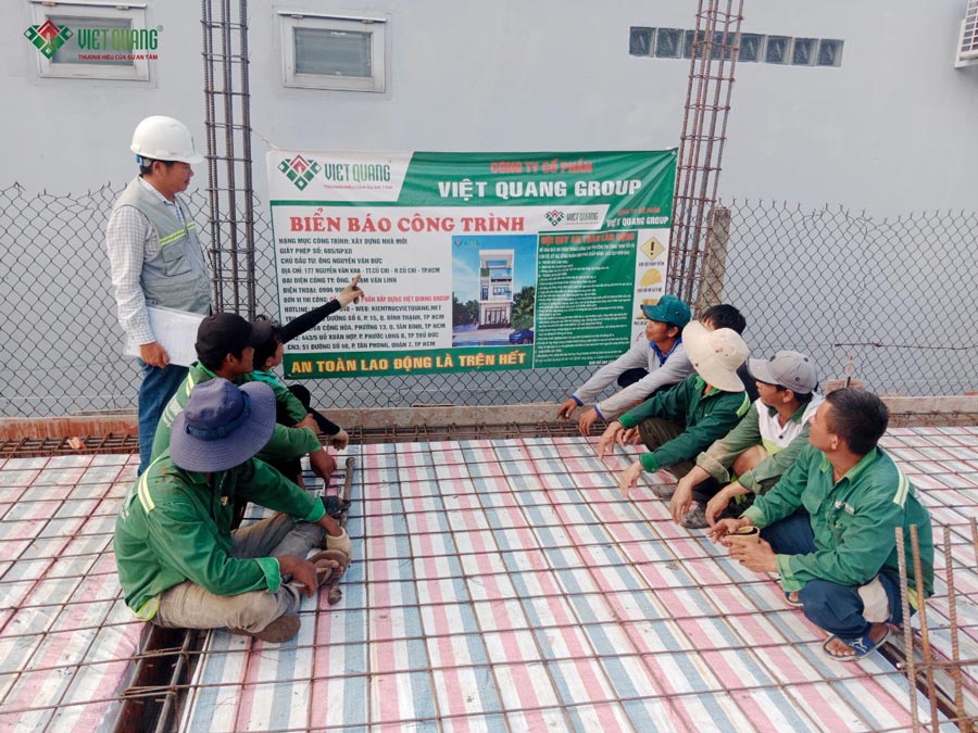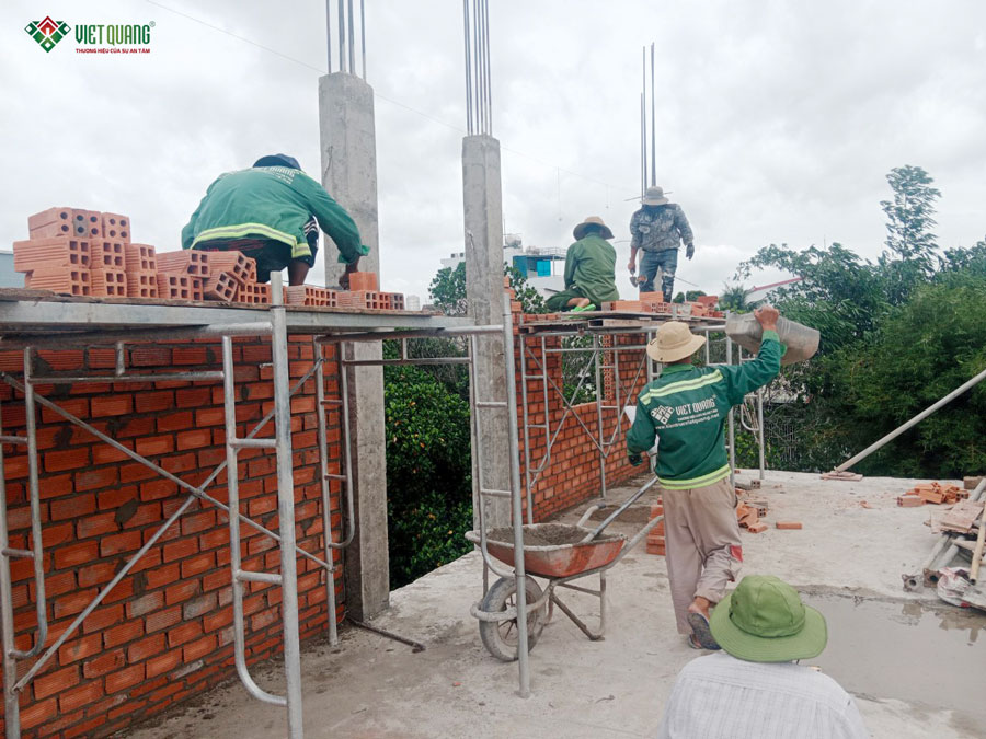 Đội ngũ Việt Quang Group triển khai thi công xây dựng nhà trọn gói 2 tầng diện tích 3x23m cho gia đình Chú Phú tại Quận Gò Vấp,...