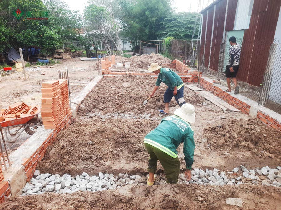 Ngay sau khi ký kết hợp đồng xây nhà trọn gói, đội ngũ Việt Quang Group cùng gia đình Chú Đức tiến hành lễ khởi công. Công tác chuẩn bị mặt bằng được triển khai kỹ lưỡng, bao gồm xác định tim cọc, tập kết vật tư – vật liệu, sẵn sàng cho quá trình thi công. Buổi lễ khởi công diễn ra trong không khí trang trọng, với mong muốn công trình thuận lợi – an toàn – hoàn thành đúng tiến độ đã cam kết.