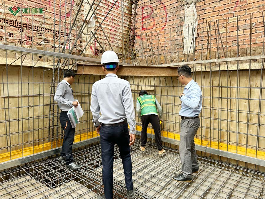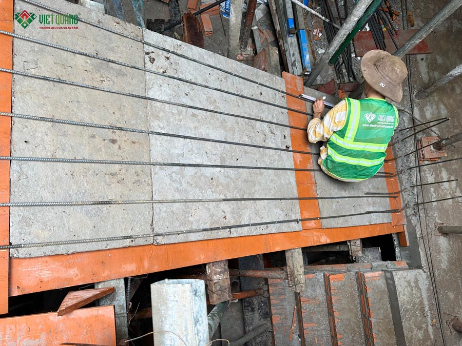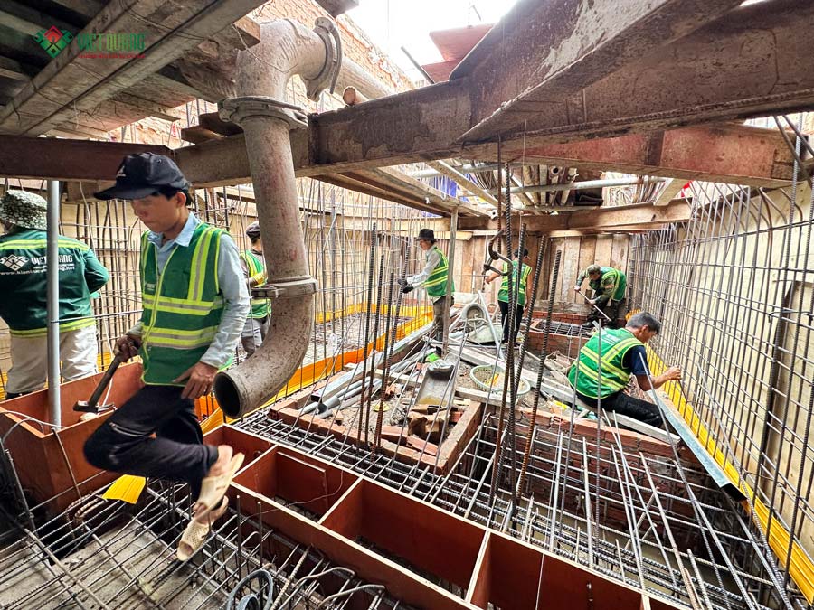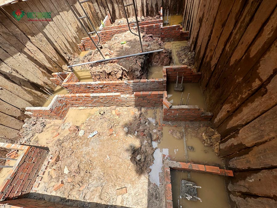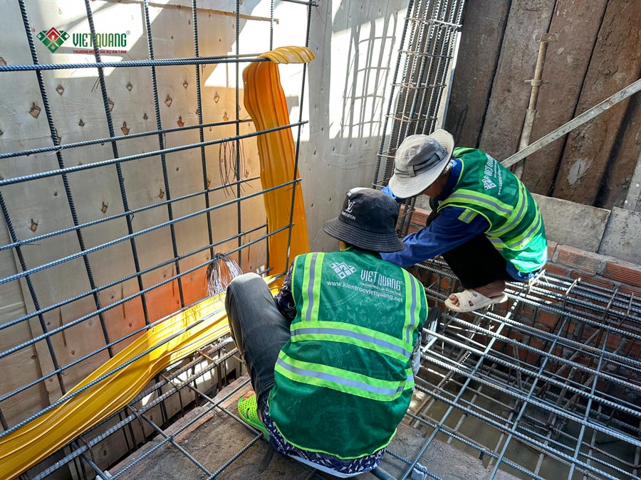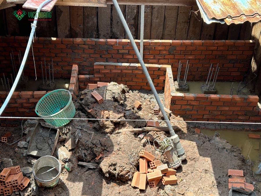 Sau khi chọn được ngày lành tháng tốt, đội ngũ Việt Quang Group cùng gia đình Chú Thủy tiến hành lễ khởi công xây dựng. Công tác thi công móng được triển khai theo đúng quy trình kỹ thuật, bao gồm đào hố móng, dựng cốp pha, xây hố móng, tô tường lót móng, thi công dầm móng, lấp móng, chuẩn bị cho các hạng mục tiếp theo. Tất cả các công việc đều được giám sát chặt chẽ, đảm bảo đúng bản vẽ kết cấu và tiến độ đã cam kết.