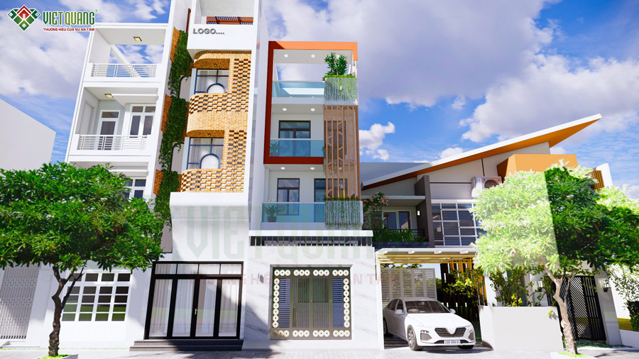 Mặt tiền 5m được xem là kích thước lý tưởng và phổ biến đối với các mẫu nhà ống 4 tầng có hầm tại đô thị. Công trình được thiết kế theo phong cách hiện đại – hình khối rõ ràng – đường nét hài hòa, tạo nên tổng thể kiến trúc vững chắc và thẩm mỹ cao.