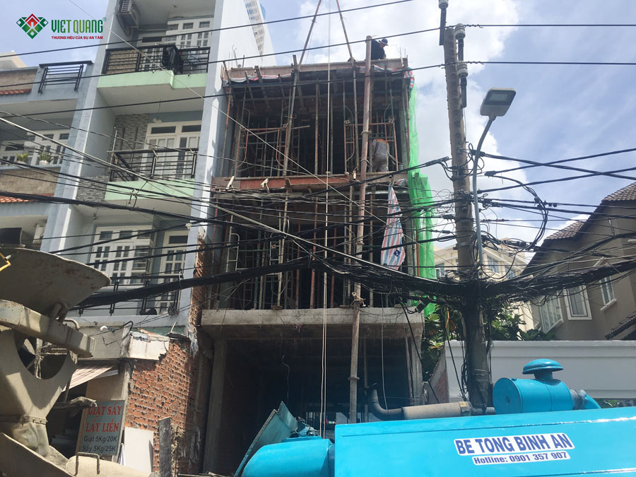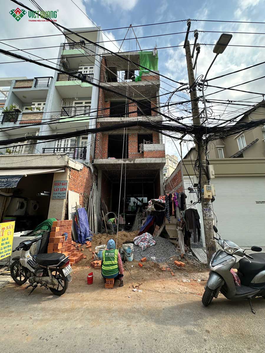 Bạn đang có kế hoạch xây nhà 4 tầng có hầm tại Thành phố Hồ Chí Minh và muốn tìm hiểu quy trình thi công thực tế? Việt Quang Group giới thiệu đến bạn dự án nhà 4 tầng có hầm diện tích 5x23m của gia đình Chú Thủy tại Quận Bình Tân – một công trình tiêu biểu giúp bạn hình dung rõ ràng từng hạng mục thi công, kỹ thuật xây dựng và các công việc cần thực hiện để hoàn thiện ngôi nhà.