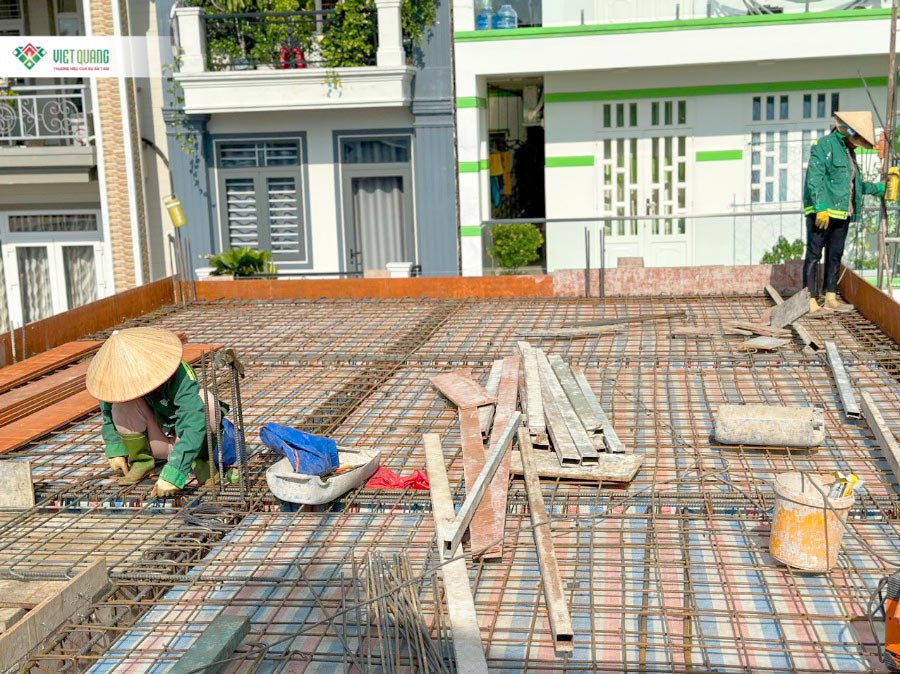 Giai đoạn thi công lầu 2 không thay đổi nhiều về quy trình, tuy nhiên thời gian có thể kéo dài hơn do việc vận chuyển vật tư lên cao khó khăn hơn. Đội ngũ cần hoàn tất kiểm tra sắt thép, vệ sinh mặt sàn, đảm bảo quá trình đổ bê tông diễn ra liền mạch để vừa đảm bảo tiến độ vừa nâng cao chất lượng công trình.