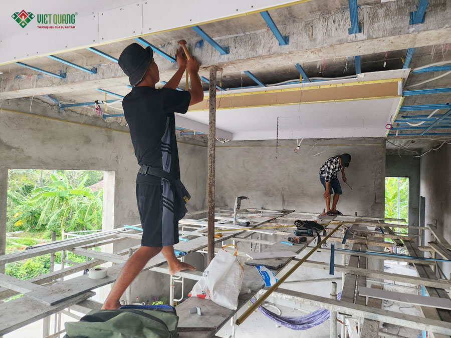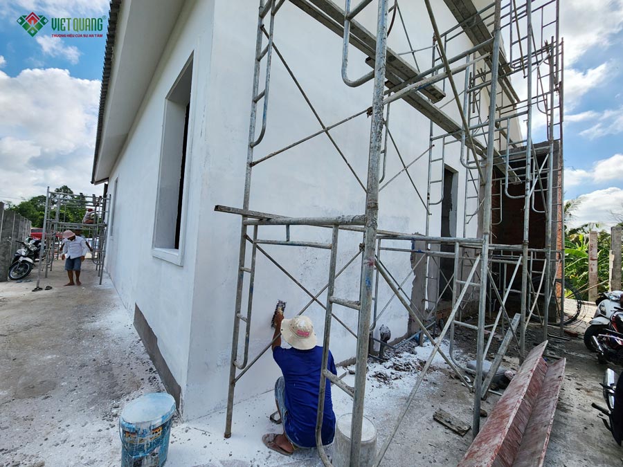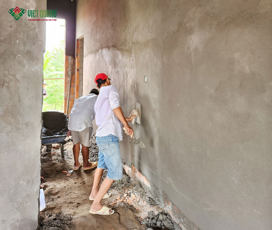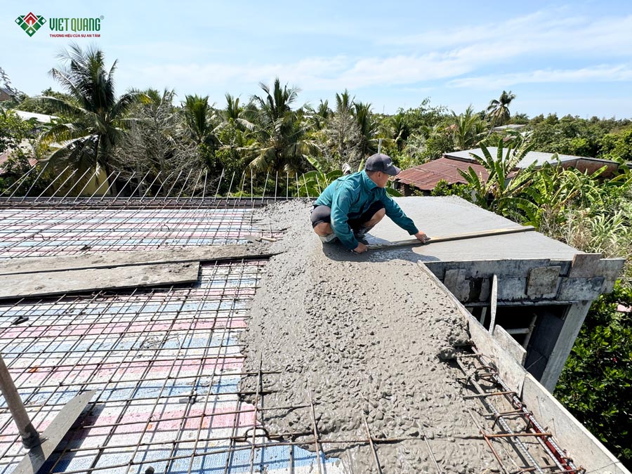 Hiểu rõ tâm lý của gia chủ khi xây dựng tài sản lớn, Việt Quang Group cam kết sử dụng vật tư đúng chủng loại, đúng tiêu chuẩn, không cắt xén vật liệu, thi công đúng kỹ thuật. Song song đó, báo cáo hình ảnh – khối lượng – tiến độ mỗi ngày giúp gia chủ kiểm soát công trình minh bạch. Sau mỗi hạng mục, hai bên tiến hành đối chiếu hồ sơ thiết kế và nghiệm thu thực tế.