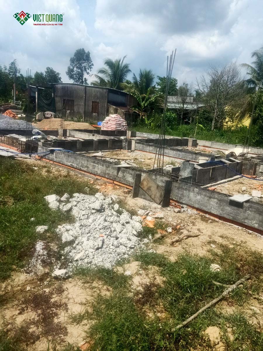 Để đảm bảo công trình bền vững theo thời gian, Việt Quang Group lựa chọn phương án móng cọc bê tông cốt thép cho ngôi nhà 1 tầng 10x17m. Đây là giải pháp kết cấu phù hợp, giúp tăng khả năng chịu tải, cố định công trình chắc chắn trên nền đất.