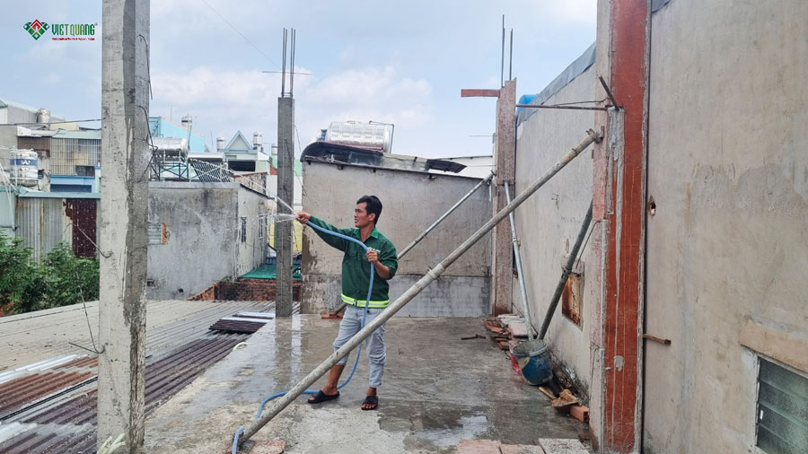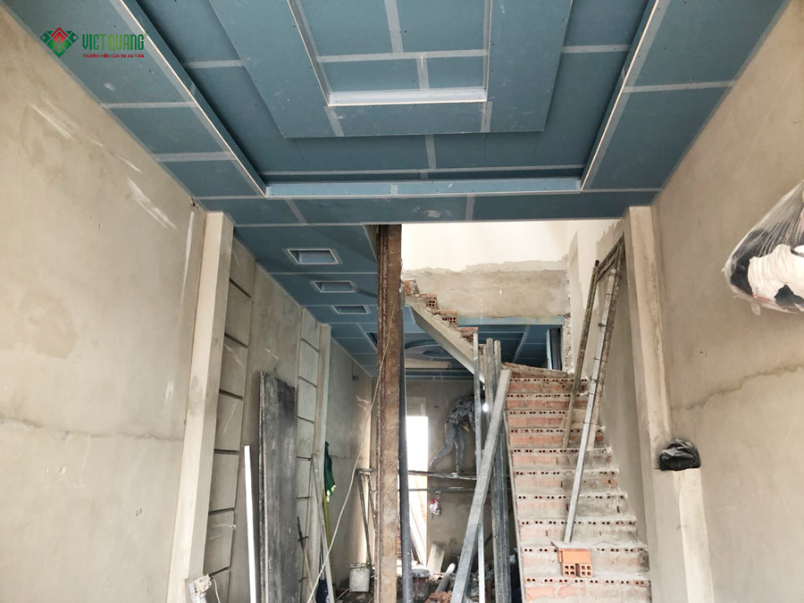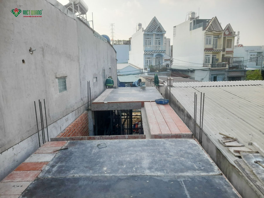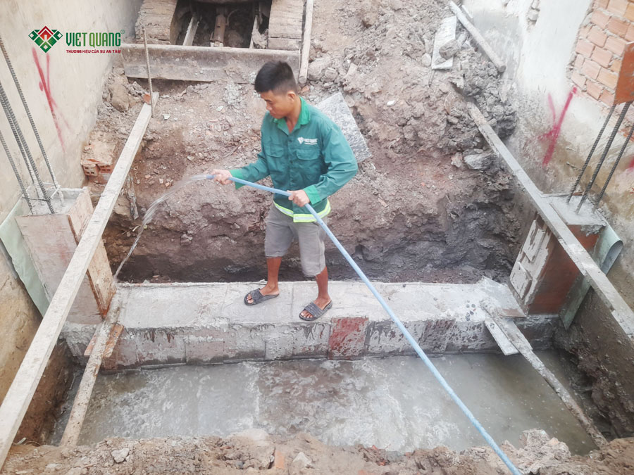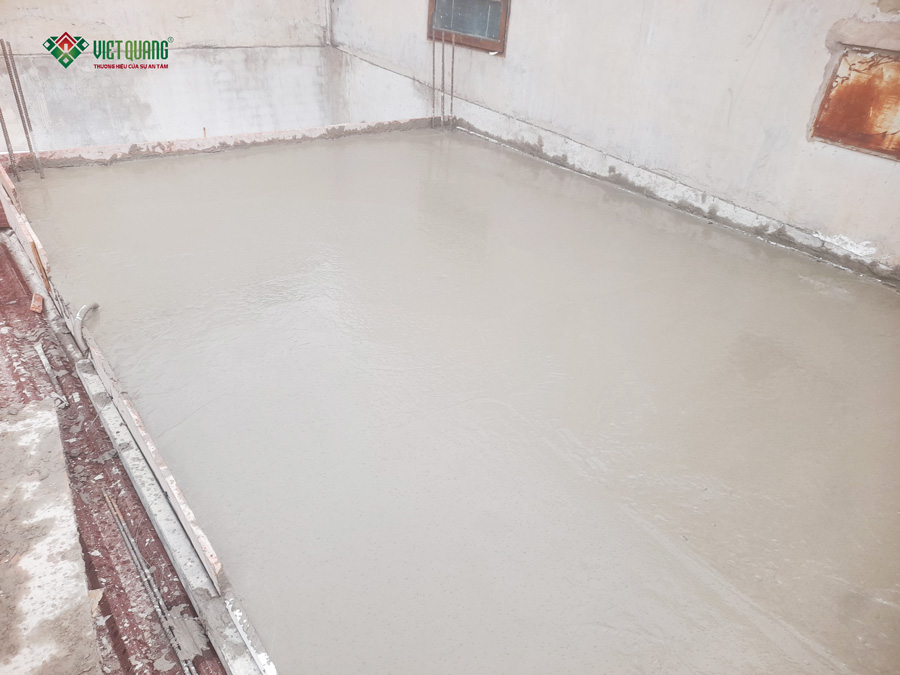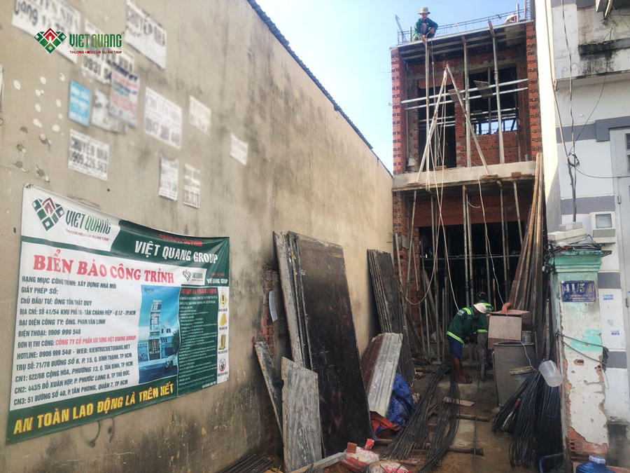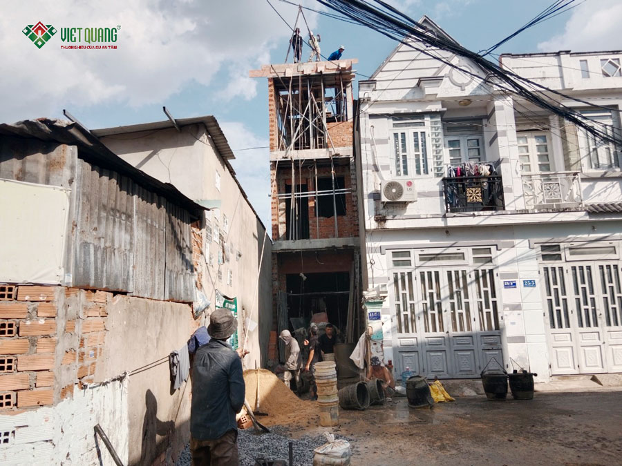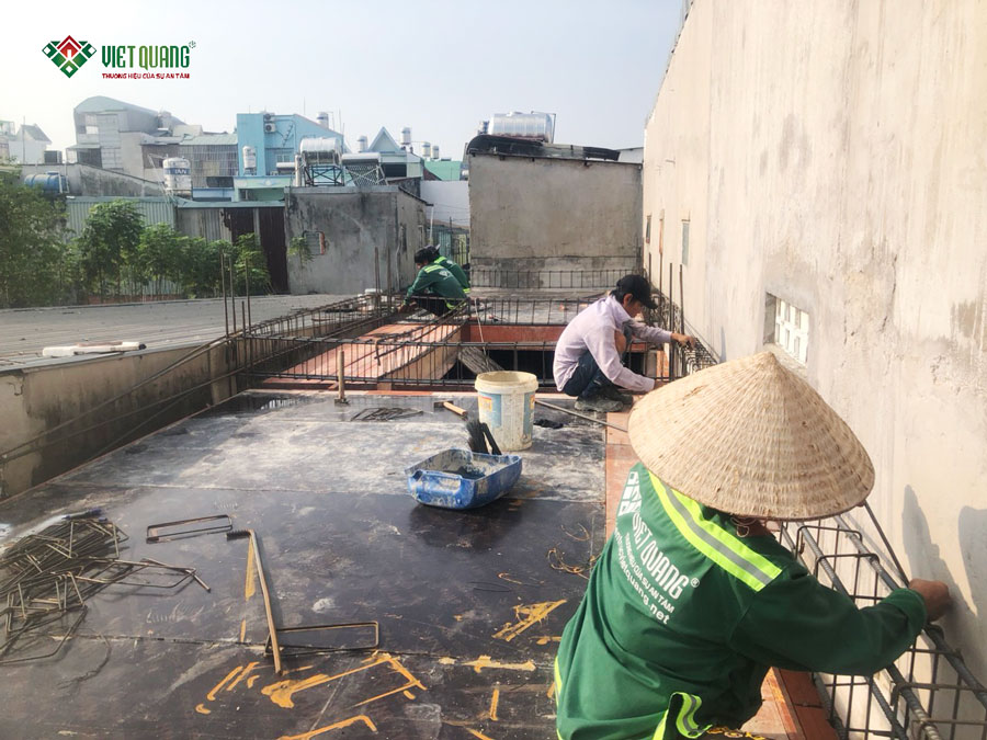 Các hạng mục thi công phần thô như gia công thép sàn, dầm sàn, đổ bê tông sàn các tầng, dựng cột bê tông cốt thép, xây tường ngăn, thi công cầu thang, bảo dưỡng bê tông. Song song đó, đội ngũ Việt Quang Group tổ chức họp an toàn lao động định kỳ, đảm bảo an toàn thi công và tiếp nhận phản hồi từ chủ đầu tư để nâng cao chất lượng công trình.